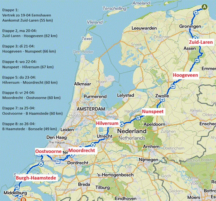 Je kunt het laatste stuk meefietsen vanaf Middelburg, of onderweg 1 of 2 dagen aanhaken. Of gewoon de hele tocht .